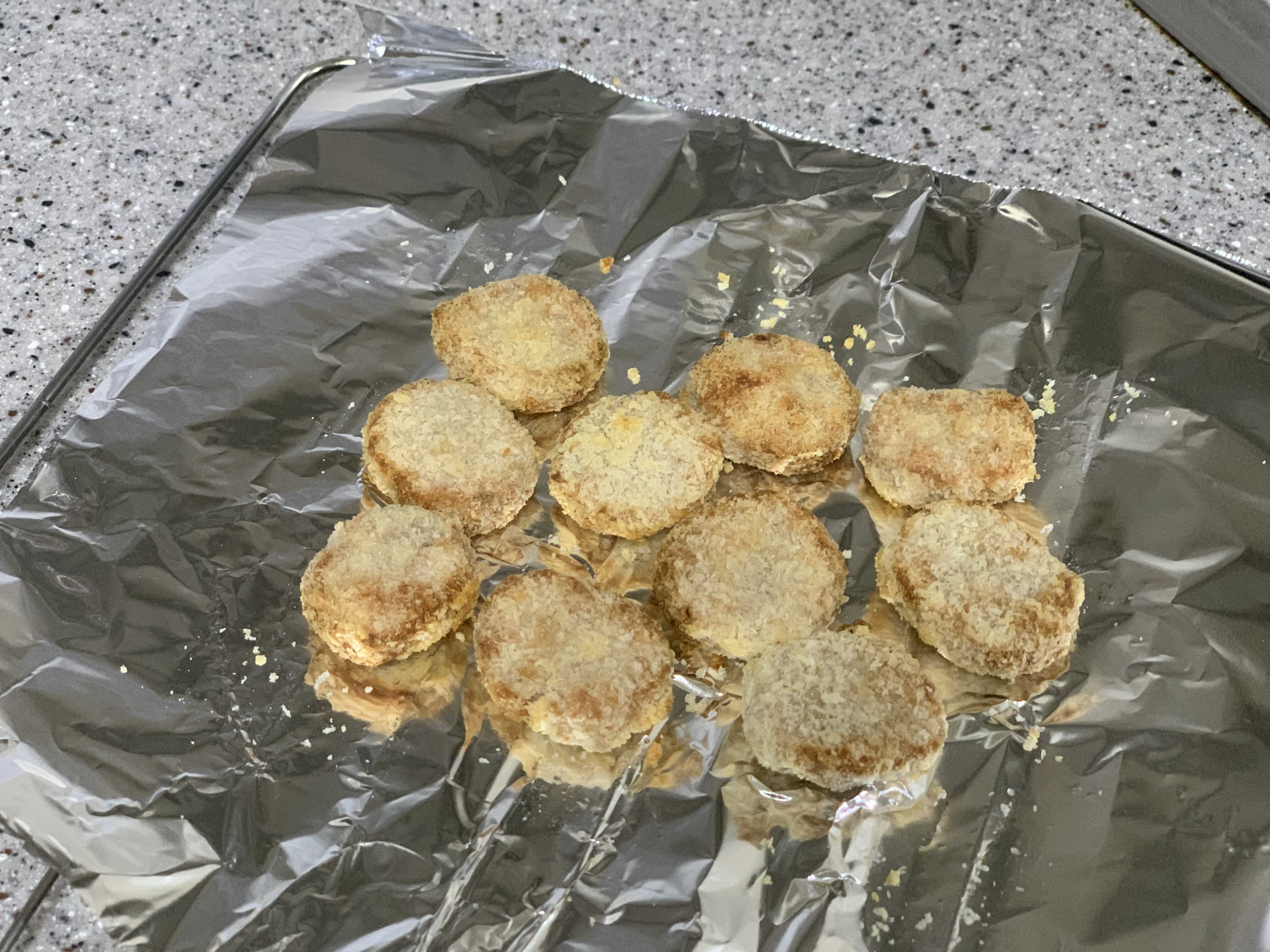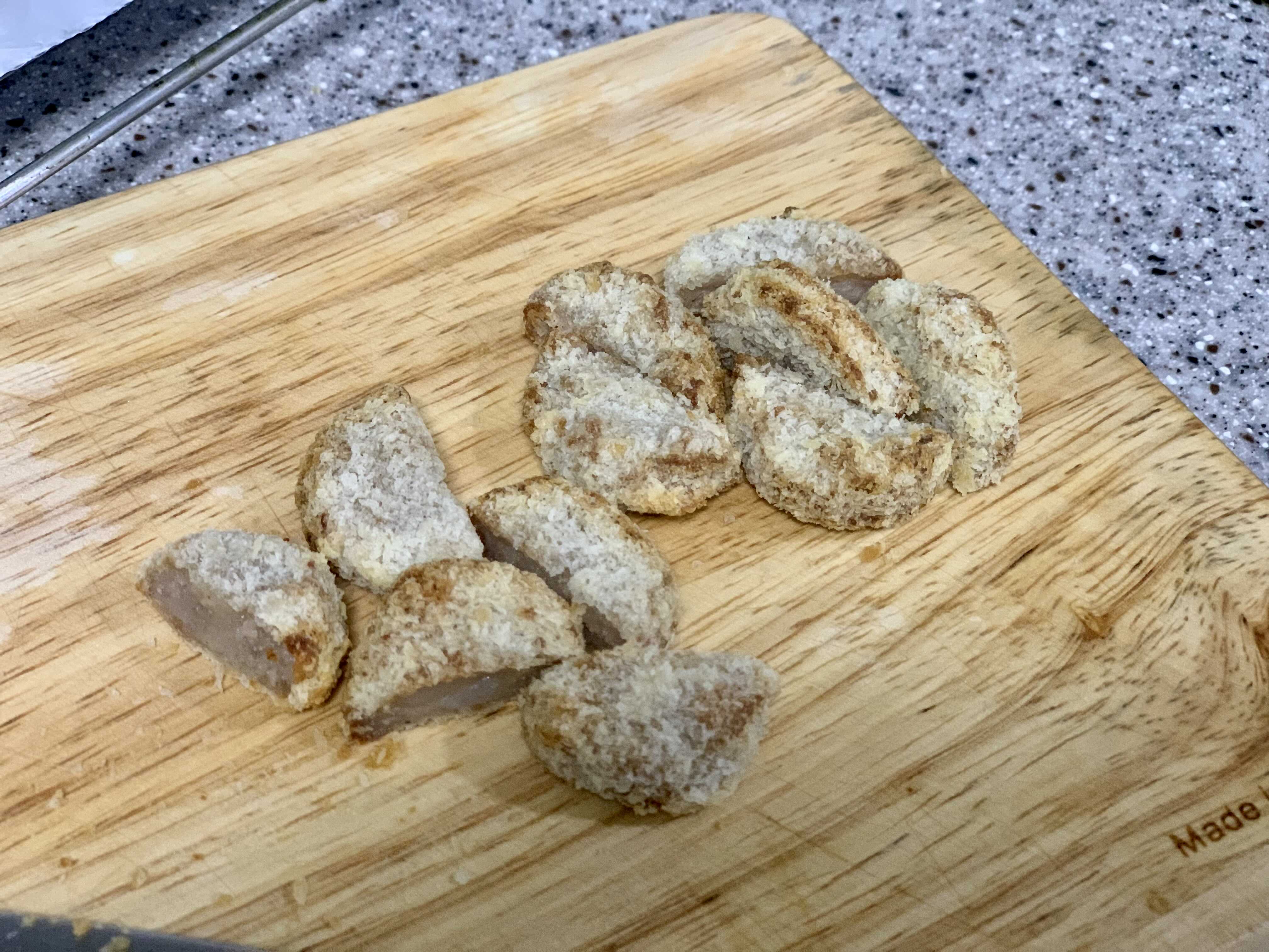 갑자기 풀떼기가 들어가면 위가 놀랠까 봐 미니 돈가스도 기름 없이 오븐에 구워줍니다.