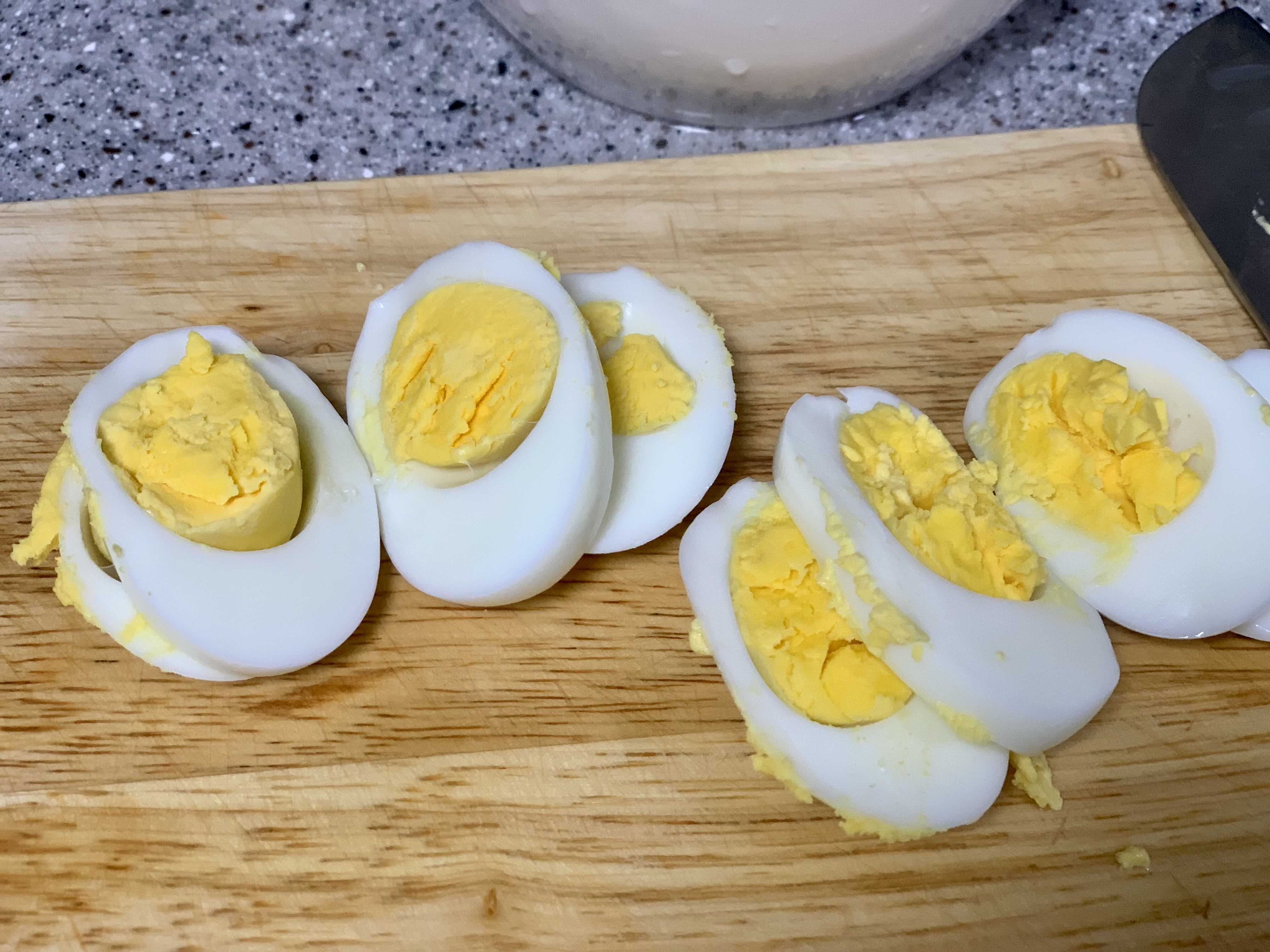이제 준비한 재료를 하나씩 볼에 올려줍니다.