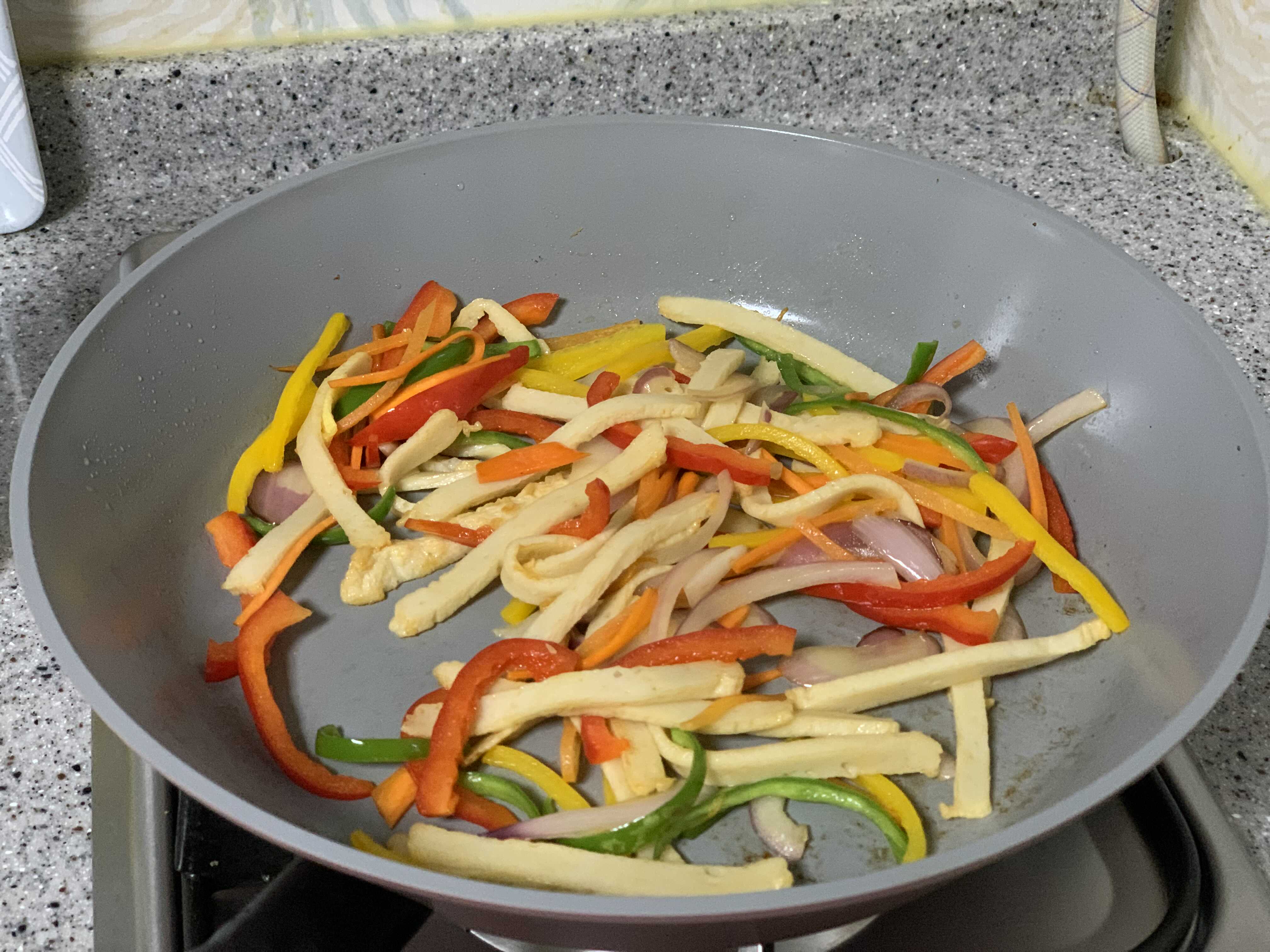 볶은 야채는 따로 덜어 둡니다. 이제 곤약면에 간을 하고 볶을 차례입니다.