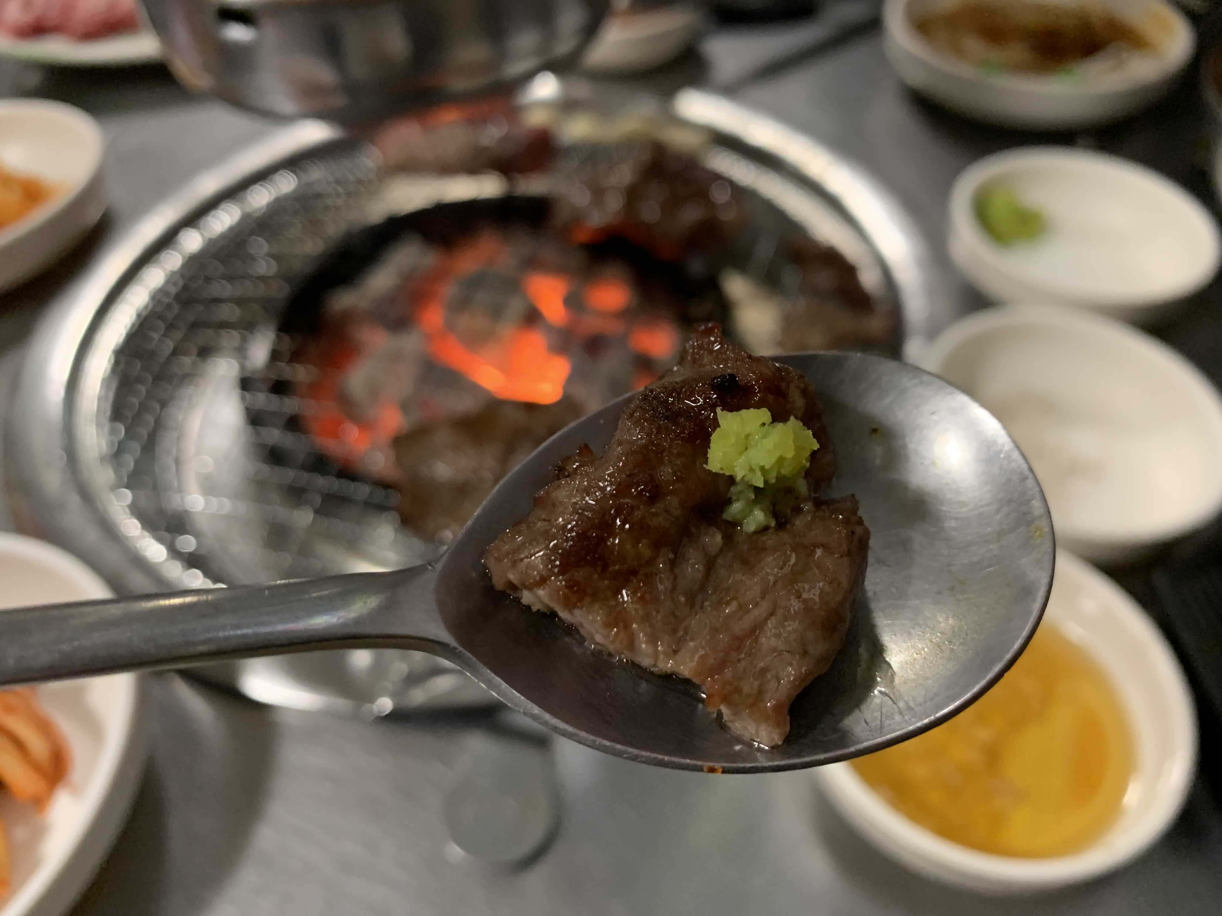 요렇게 갈비살에 생와사비만 살짝 올려 먹어도 맛있습니다.