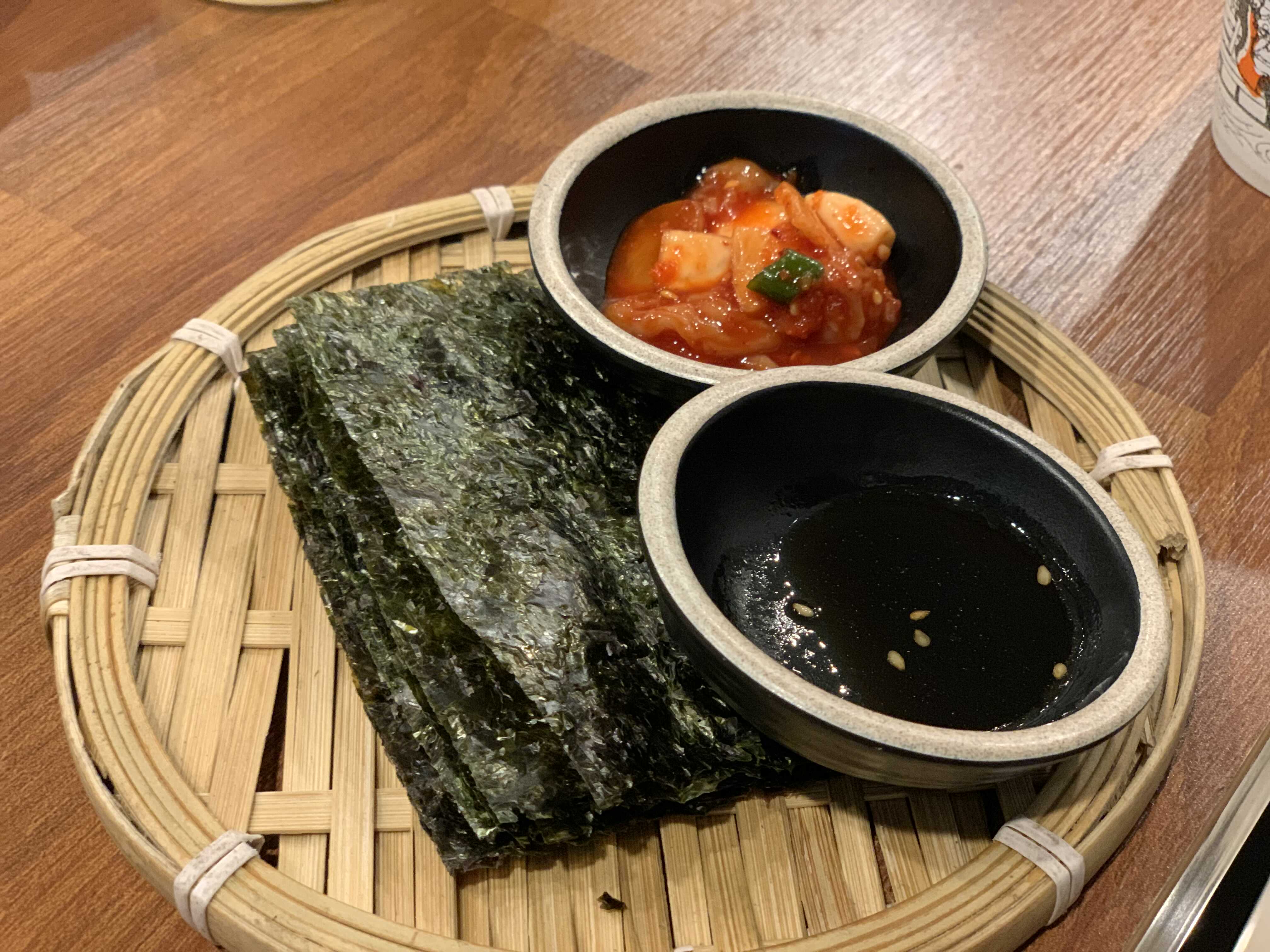 된짱찌개와 밥을 주문하니 함께 나왔던 마른김과 젓갈, 간장입니다. 김에 밥을 싸서 고기와 먹는 것이 너무 꿀조합이라 김은 한번 더 리필해서 먹었습니다.