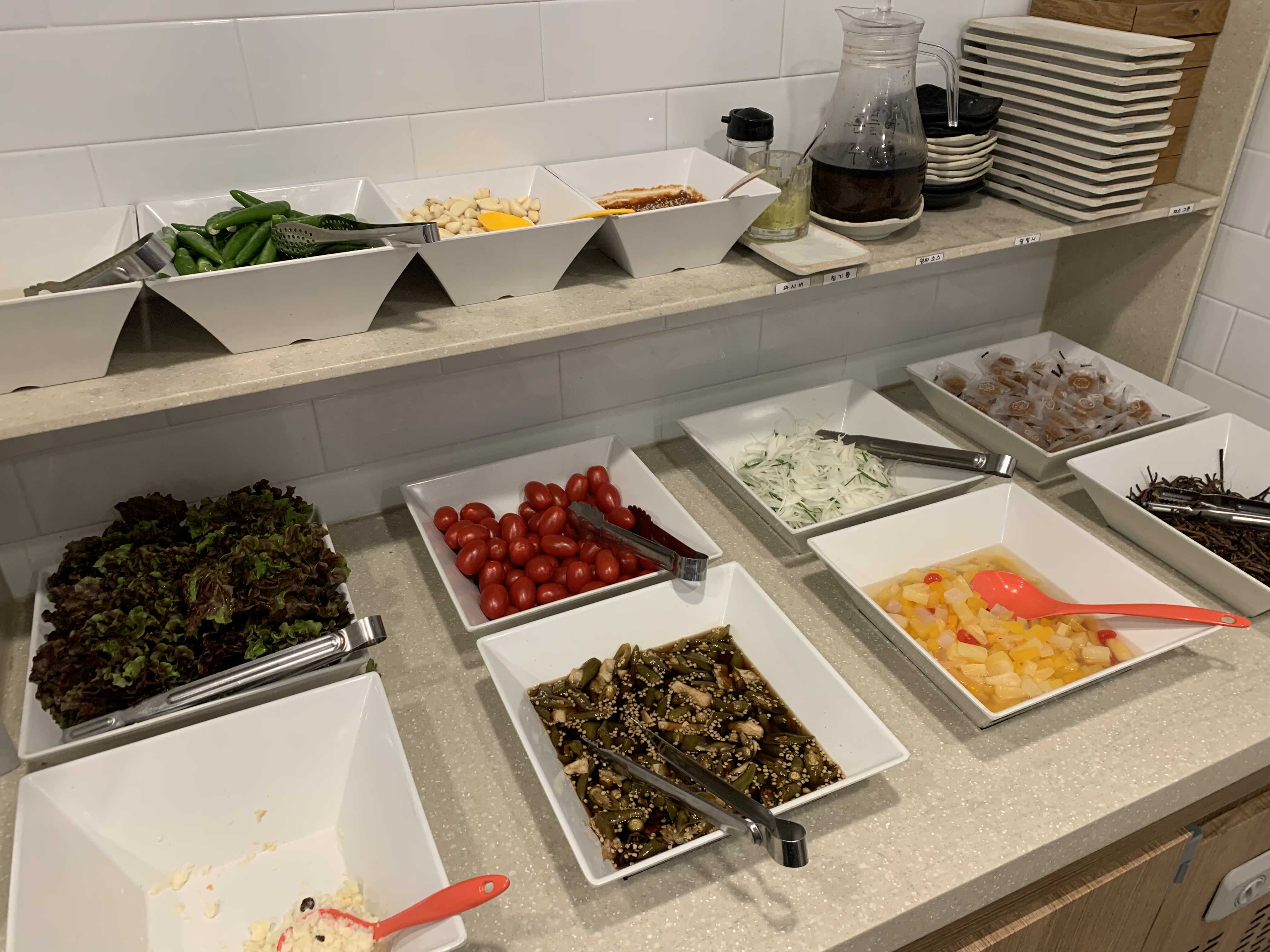 대부분 밑반찬에도 있는 음식이고 감자샐러드, 과일후르츠, 약과, 방울토마토, 고사리 정도가 추가로 있습니다.