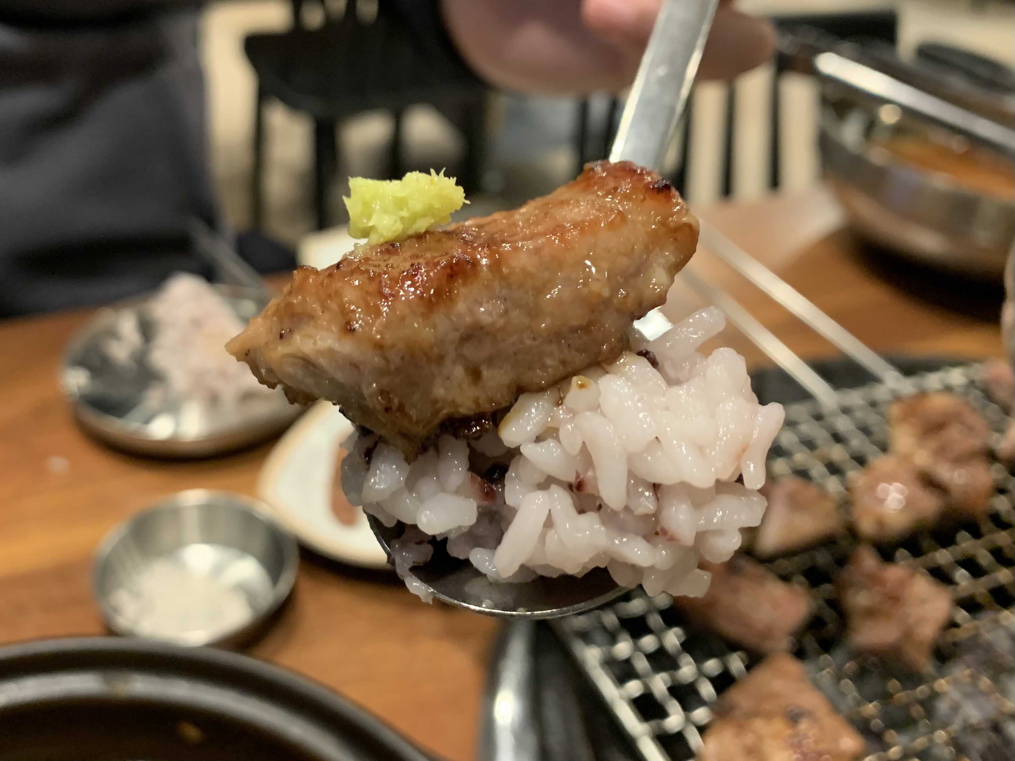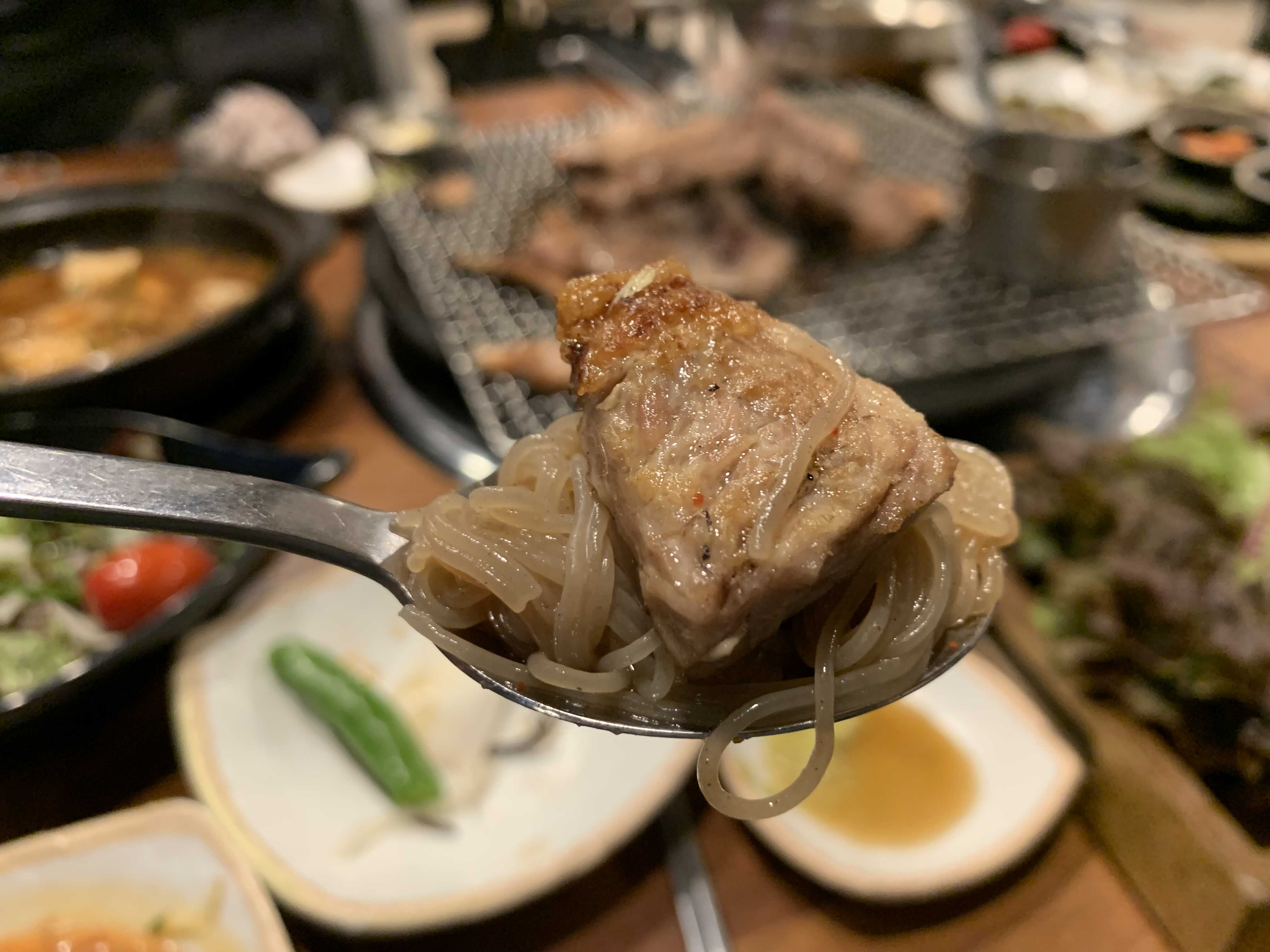 쌀밥에 윤기 좔좔 흐르는 양념갈비 올려서 또 한입 먹습니다. 이렇게 밥이랑 먹어줘야 양념갈비는 먹은 것 같습니다.