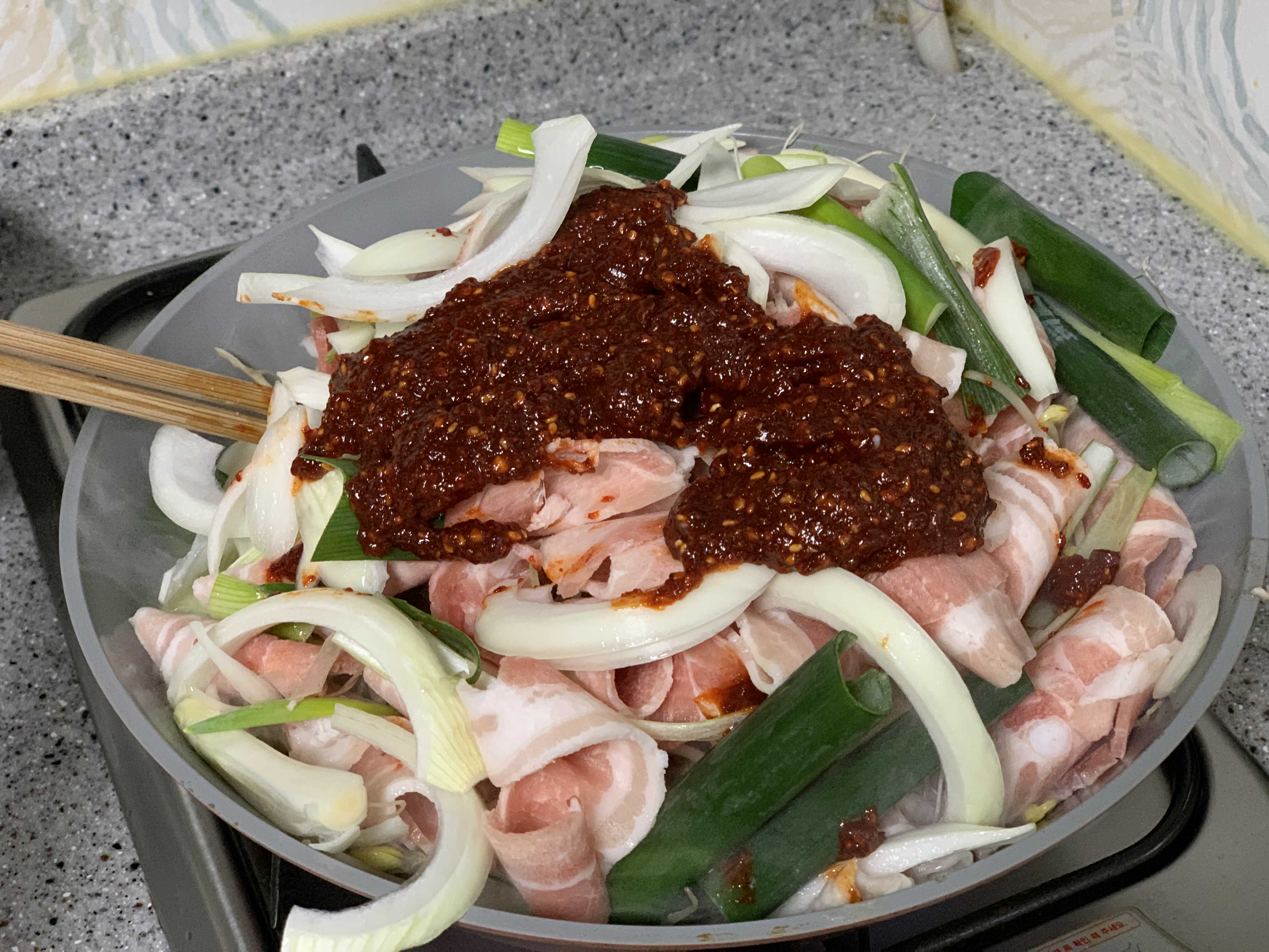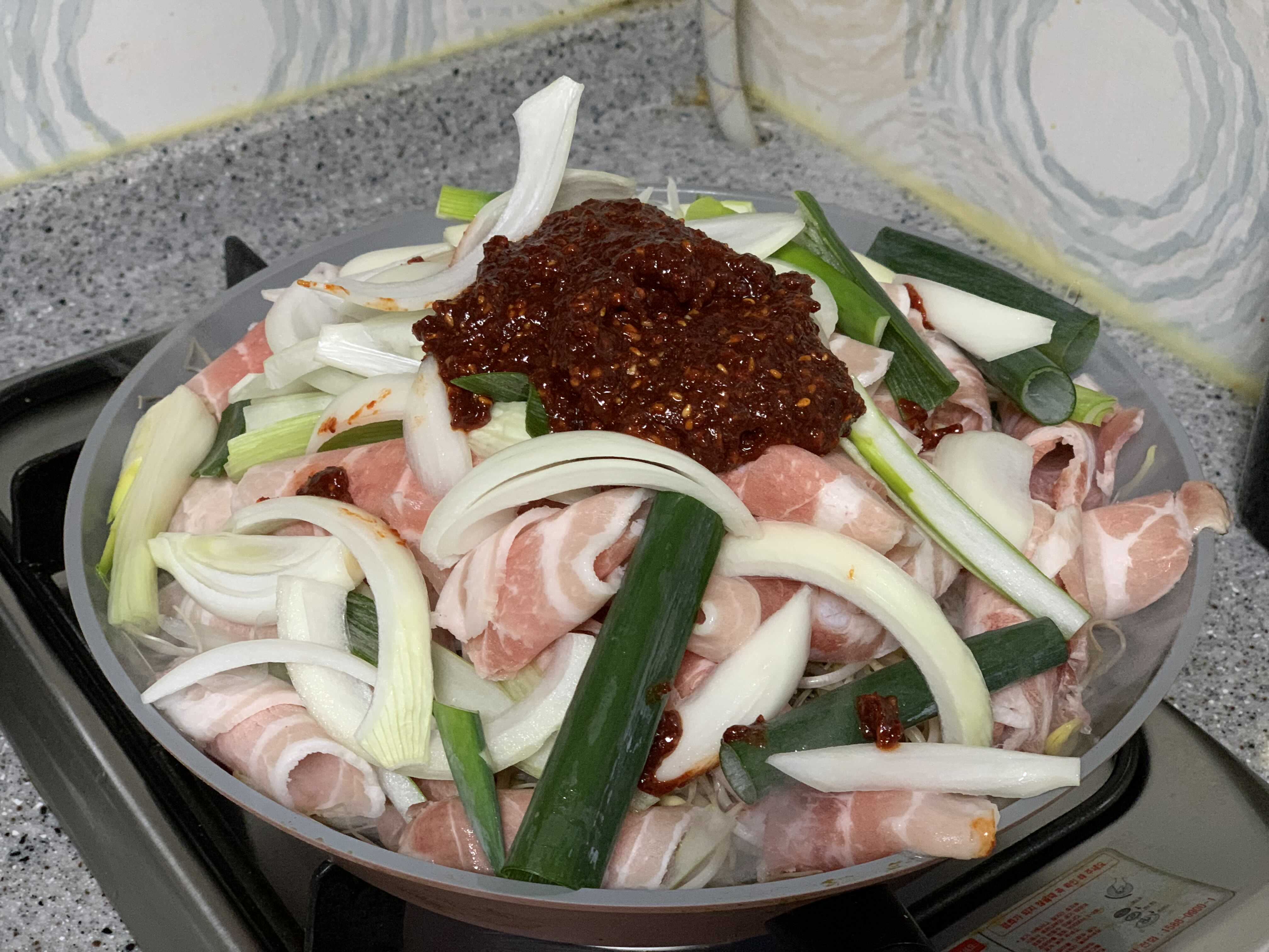 고기는 대패삼겹살이나 불고기용 앞다리살이나 목살 등등 고기 종류는 상관없습니다. 참고로 콩불은 두꺼운 삼겸살 보다는 얇은 고기가 어울리는것 같습니다.
