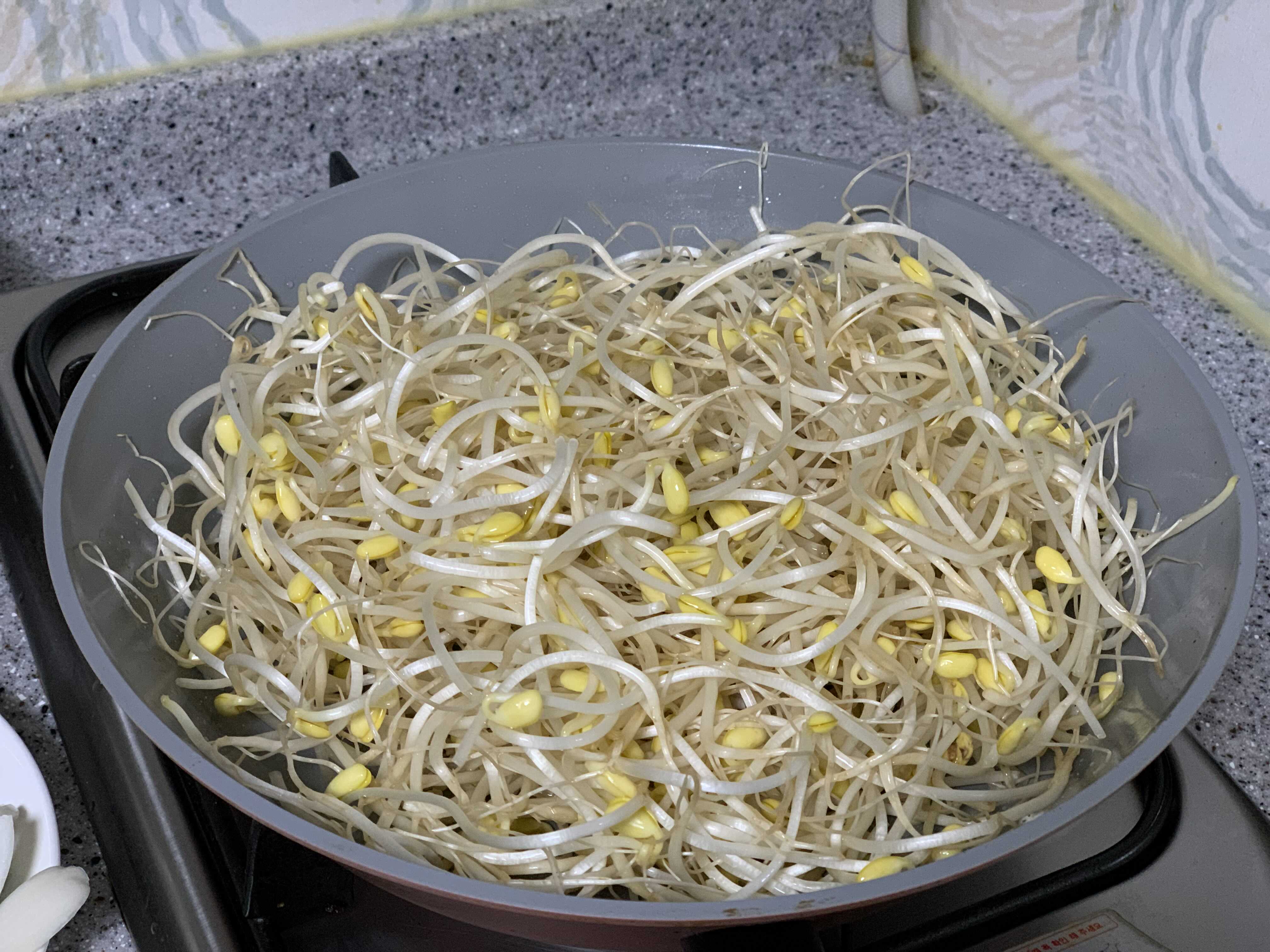 아삭한 콩나물의 식감이 살아 있을만큼 적당히 익혀 줍니다. 너무 익혀 버리면 콩나물에서 수분이 다 빠지고 물이 많이 생기게 되어 흥건해 질 수 있으니 빠르게 익히는 것이 중요합니다.
