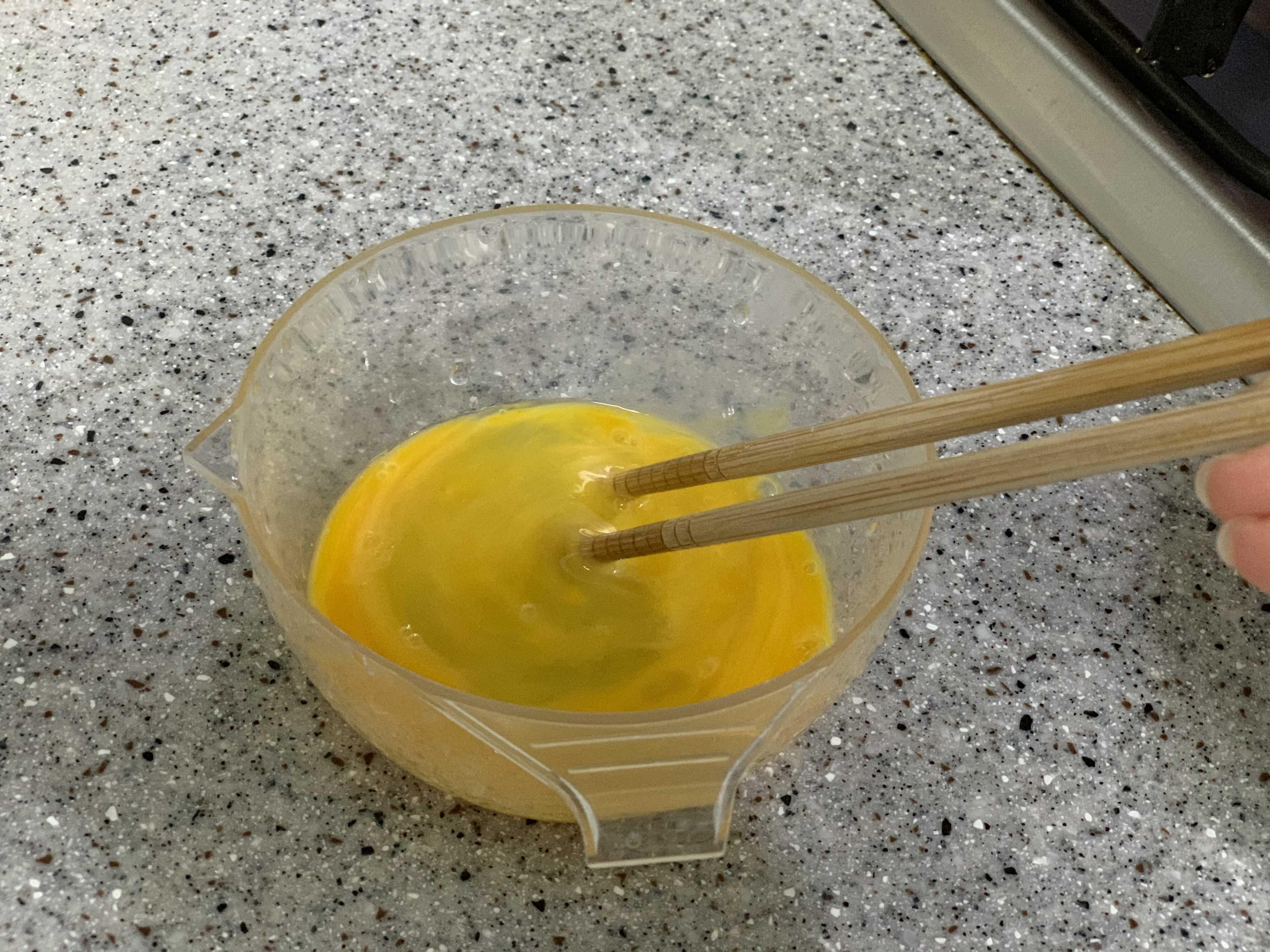 계란 1개는 잘 저어서 소금 간 살짝 하고 스크램블을 만들어 줍니다.