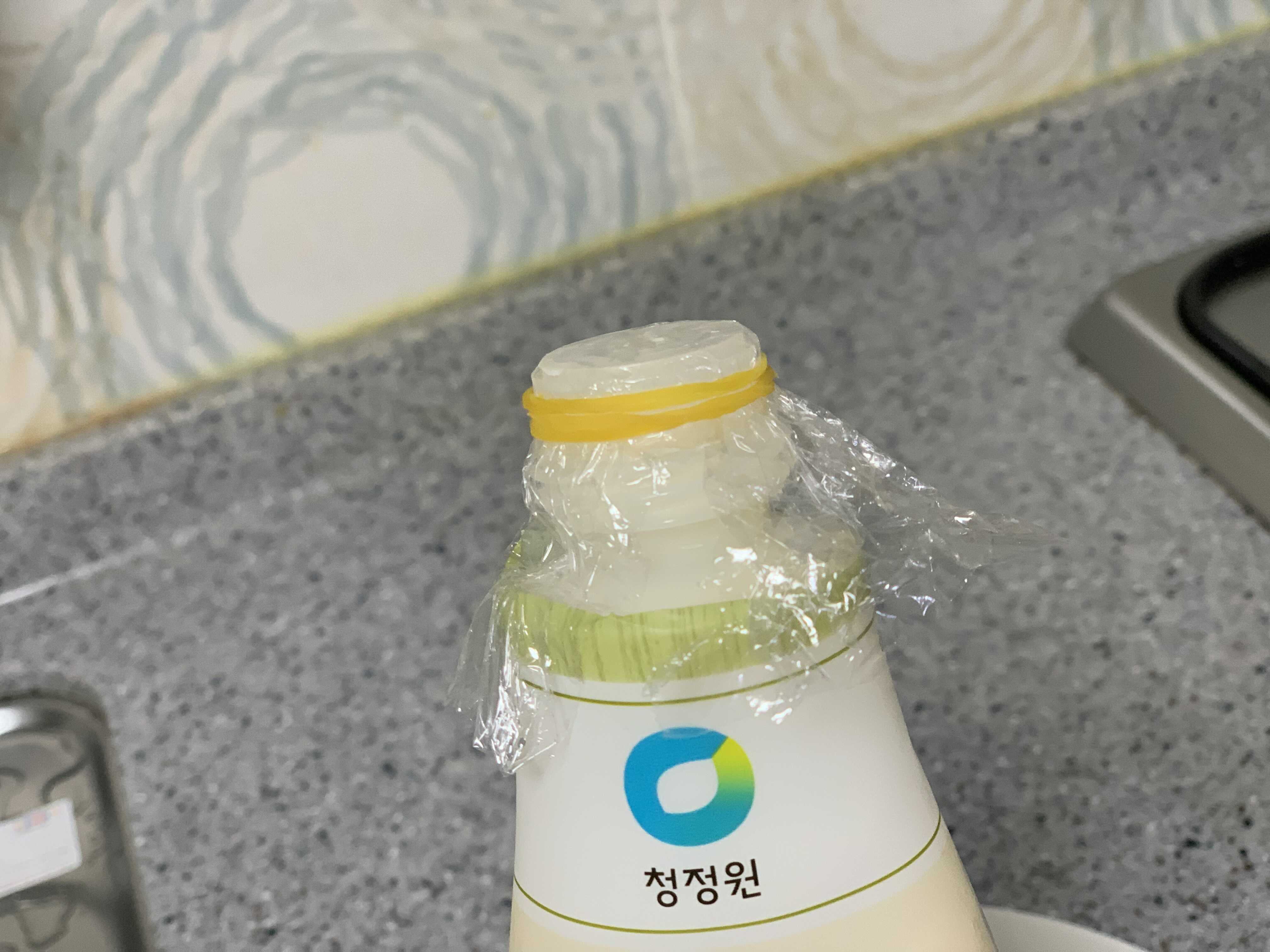 얇은 마요네즈 뿌리는 방법은 입구에 랩을 싸서 작은 구멍을 뽕 내주면 데코 하기 쉽게 얇게 마요네즈가 뿌려집니다.
