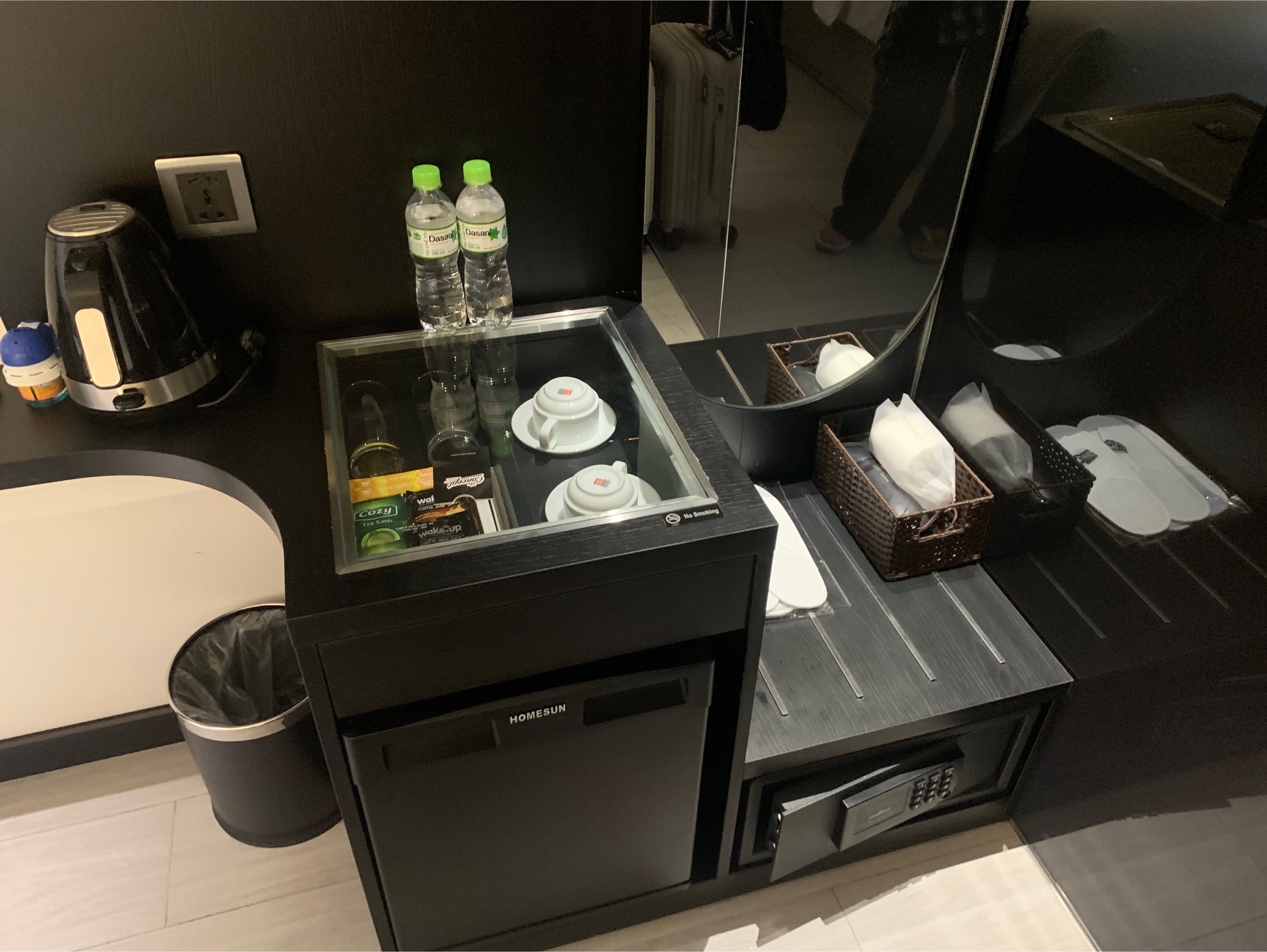 1층 미니바에서 캡슐커피, 티, 무료로 이용 할 수 있고 세탁기와 건조기도 무료로 이용 할 수 있어 장기 여행자들 세탁하기 좋다. 조식서비스는 따로 없고 1층 로비에서 식음료 취식 가능해서 그랩 배달시켜서 커피와 함께 아침을 먹기 좋다. 객실직원 도어직원 모두 친절하다.