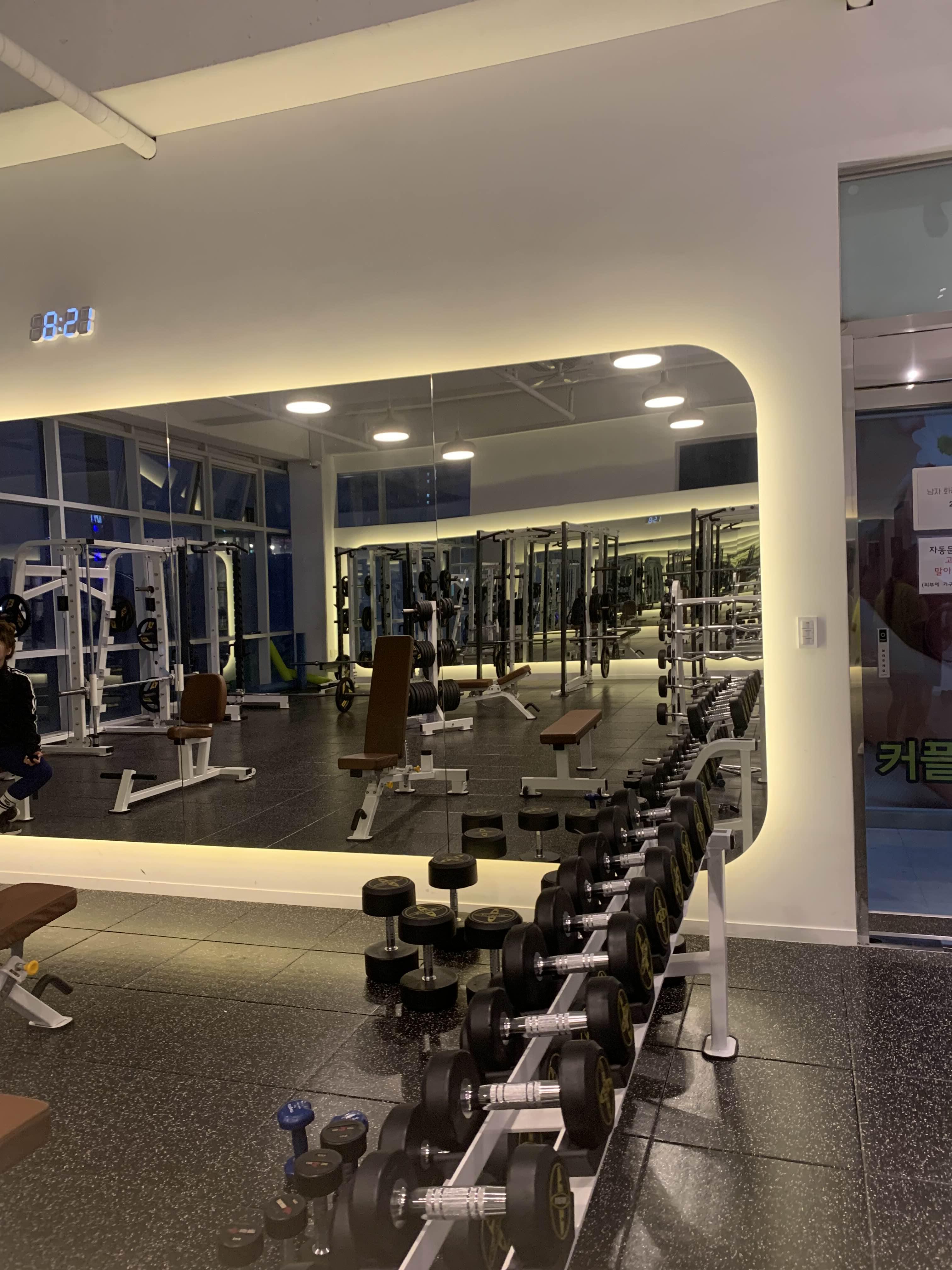 한시간정도 소화시기고 오늘도 운동하러 왔다. 프리웨이트존은 늘 사람이 없다.