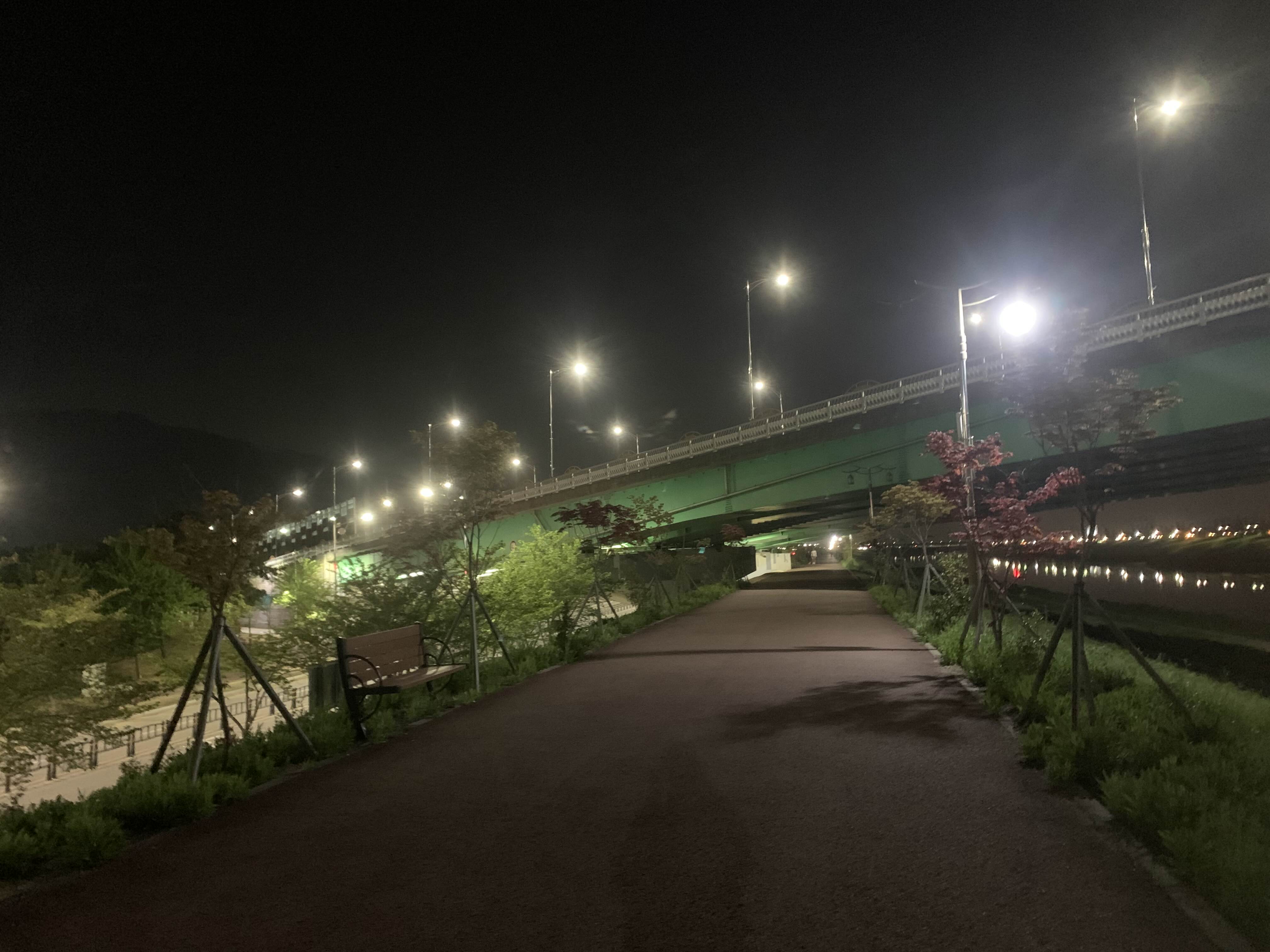 오늘은 뚝길 지나 가산공원 안으로 5K코스를 갔다. 메인 도로 공원길은 자동으로 가로등이 켜지는데 안쪽길은 가로등이 없었다. 넘어질까봐 조심히 뛰었다. 다음부터는 가로등 있는 쪽에서만 뛰어야겠다.